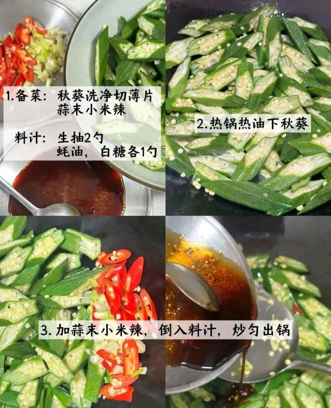 【食材】:秋葵200克、蒜末3瓣、小米辣(可选)、生抽2勺、蚝油1勺、白糖1勺。