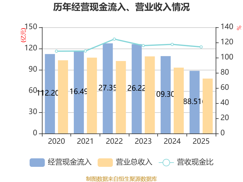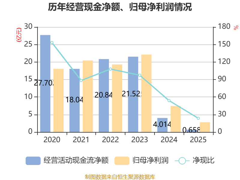 截止2025年,公司接头行径现款流净额为6578.01万元,同比下跌83.61%;筹资行径现款流净额-19.52亿元,同比减少5.11亿元;投资行径现款流净额-18.27亿元,上年同时为-57.03亿元。