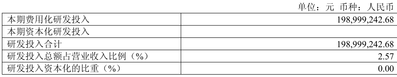 2025年全年,公司研发参预金额为1.99亿元,同比下跌9.12%;研发参预占营业收入比例为2.57%,比拟上年同时高涨0.22个百分点。此外,公司全年研发参预成本化率为0%。