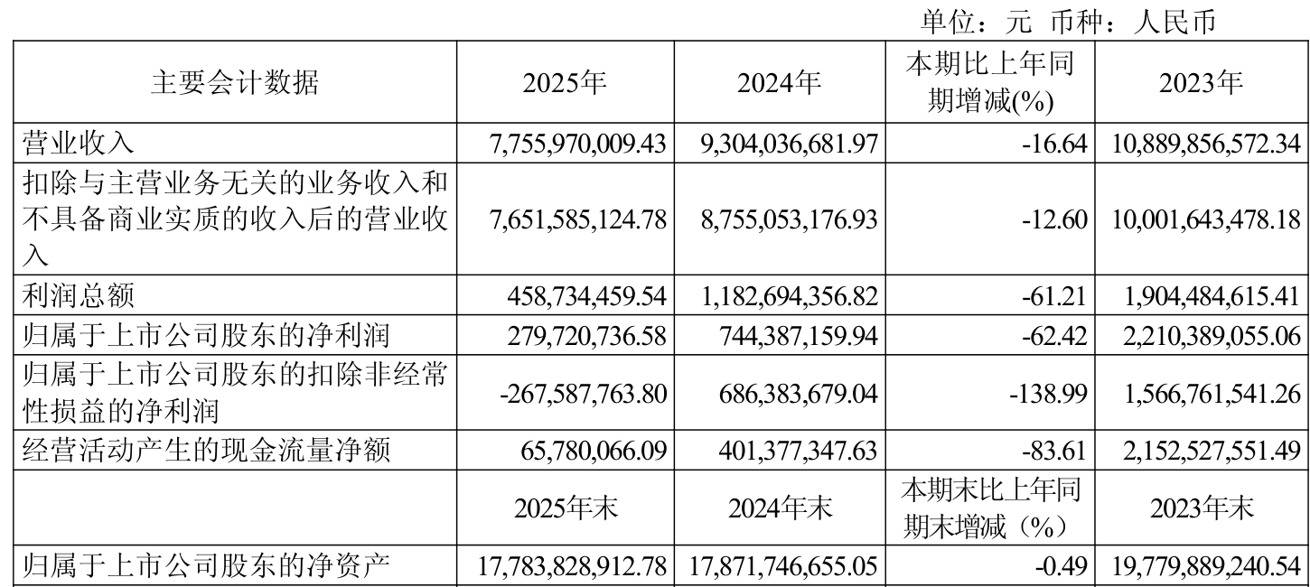 中证智能财讯汉文传媒(600373)4月18日露馅2025年年度文书。2025年,公司已毕营业总收入77.56亿元,同比下跌16.64%;归母净利润2.8亿元,同比下跌62.42%;扣非净利润示寂2.68亿元,上年同时盈利6.86亿元;接头行径产生的现款流量净额为6578.01万元,同比下跌83.61%;文书期内,汉文传媒基本每股收益为0.2元,加权平均净财富收益率为1.57%。公司2025年度分派预案为:拟向整体激动每10股派现2元(含税)。