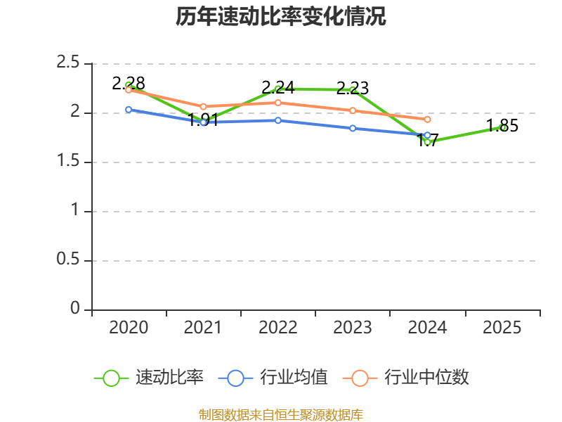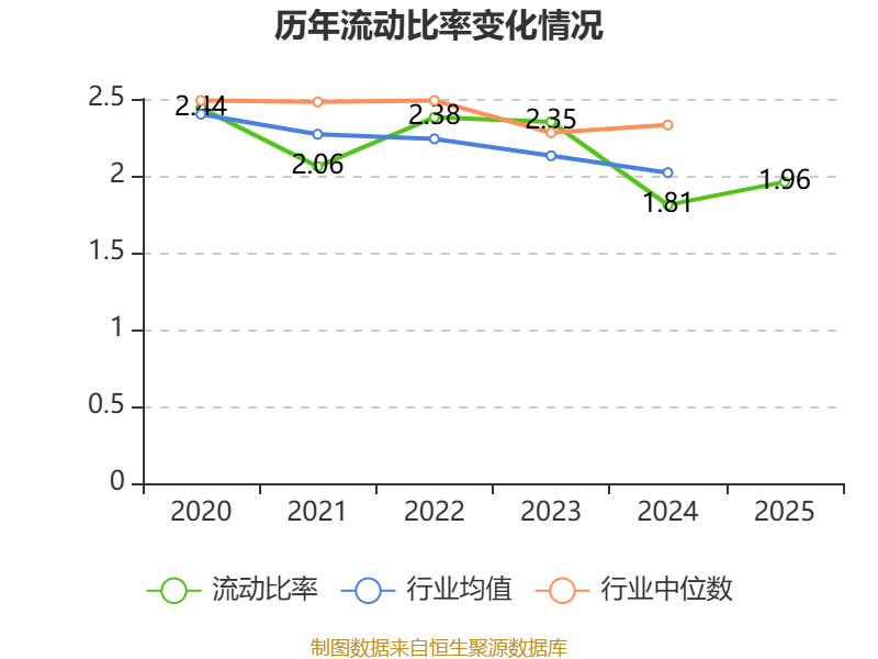 2025年,公司流动比率为1.96,速动比率为1.85。