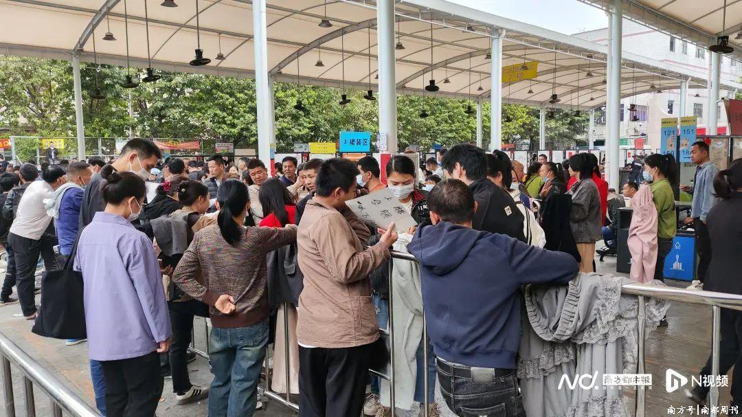 2月19日上昼,海珠康鹭片区,被挤得满满当当的招工广场。吴文伟 摄