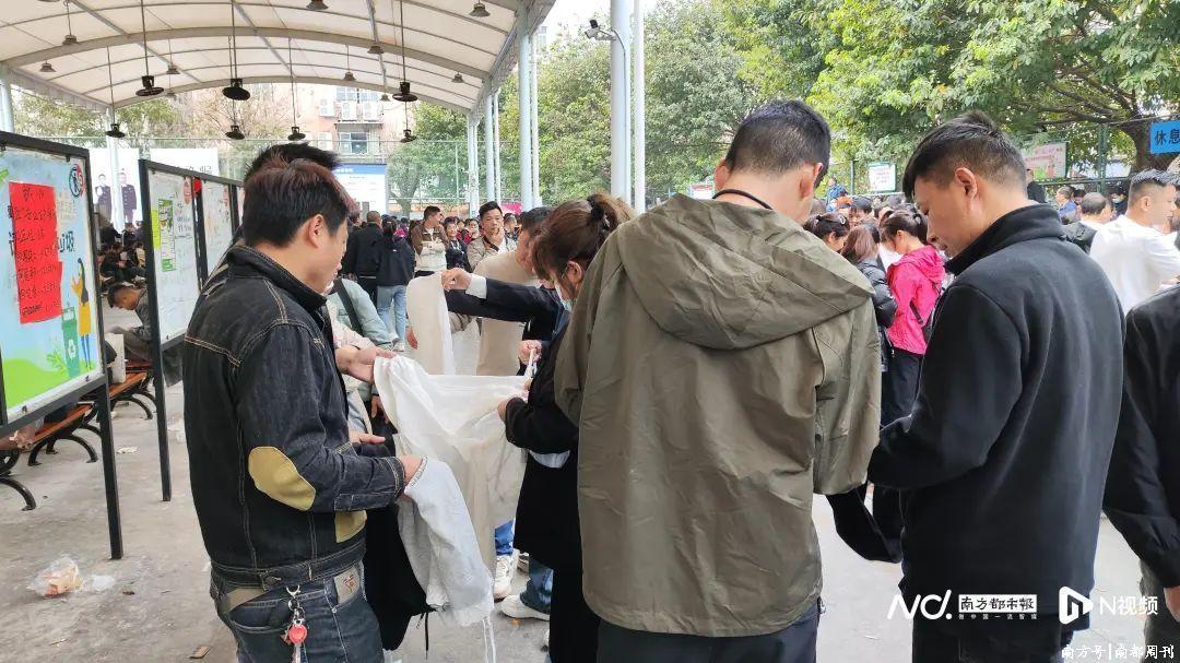 制衣厂的雇主或是负责招工的工东说念主,依据近期厂内的订单需求,一手拿样衣、布料,一手拿招工纸板,沿羁系雕栏规则的空间按次耸峙。前来觅活的制衣工如同丝毫细流无间汇入,让这片东说念主海持续升温,约在上昼10时达到“应允”。岑岭时刻,说念路被围得水泄欠亨,工东说念主们挥手如阴,小数点上前搬动。喇叭内通常传出防卫眼下的安全教导,地方堪比“春运”。