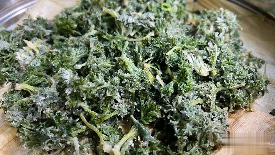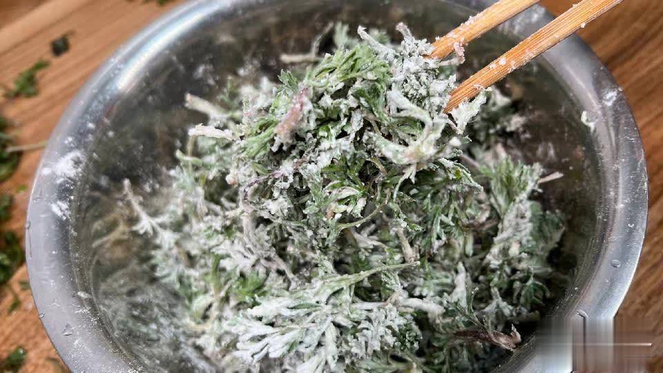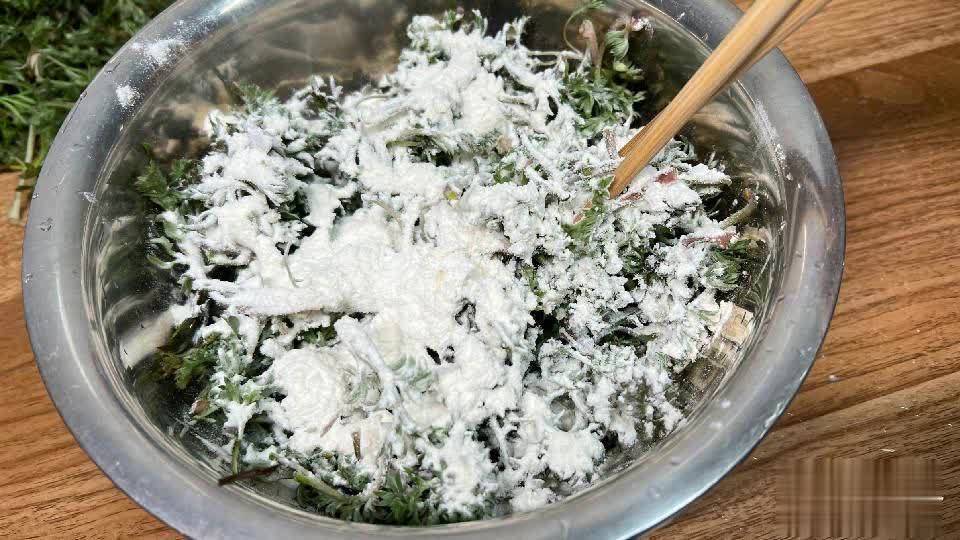 第二步:洗干净后少许屡次地撒上头粉,边撒边搅动,直至每棵白蒿均匀裹上一层薄薄的面粉,千万别增多了,否则出锅会变得特地黏,影响口感和野菜的鲜味。再加少许盐提味,食用油提香,加油会让面粉有不干不散的作用,作念任何蒸菜齐是如斯,像蒸茼蒿,蒸槐花齐是相似的。