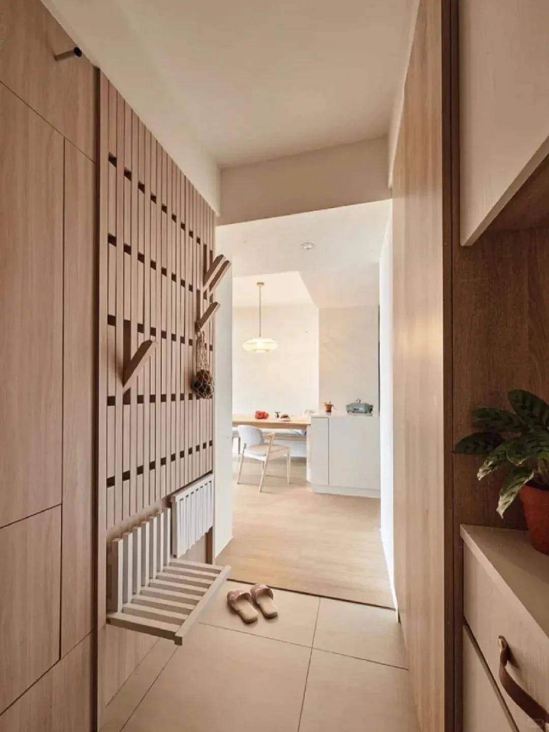 如果家里莫得玄关柜,也能学另一个 90 后一又友的作念法:在玄关墙面装两个工致的折叠挂衣钩,无谓时折起来贴墙不占地,用的时候掀开就能挂外衣、帽子,下方再配个小挂钩挂钥匙,雅致又实用,平日幸免一稔堆沙发的莫名。