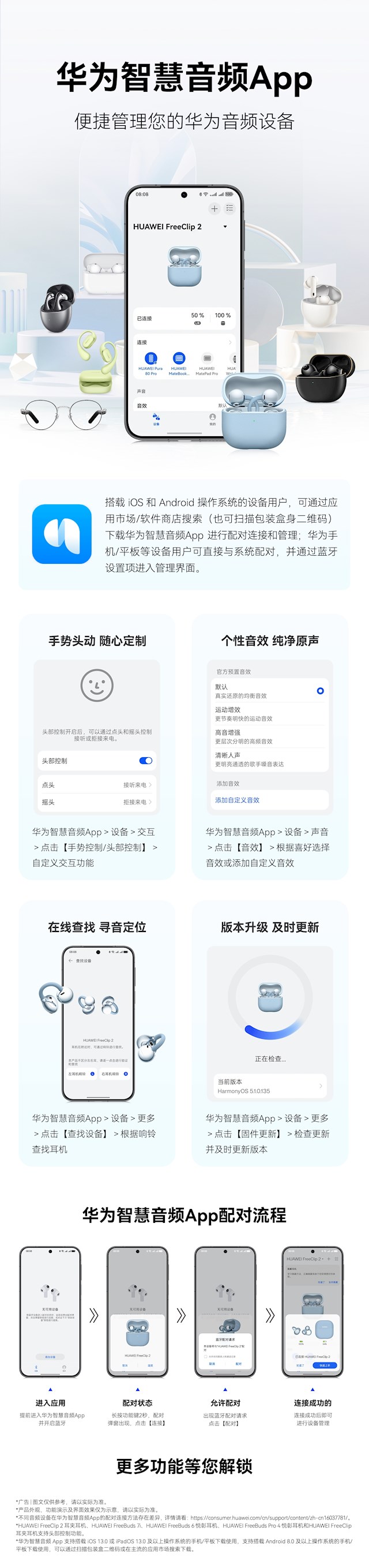 该App现在兼容华为FreeClip 2、FreeBuds 7i、FreeBuds 6等多款音频莳植。