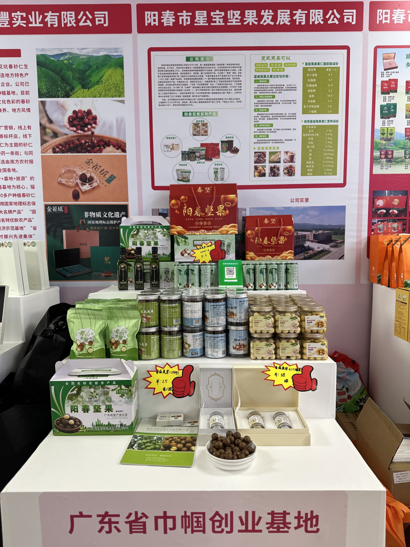 阳春市星宝坚果发展有限公司的展台前,不少市民正意思意思盎然地品尝“春坚”牌澳洲坚果。“咱们公司在阳春自建了7000多亩援助基地,全产业链把控品性。”企业代表边说边展示带壳果、果仁等系列家具。这颗来自阳春山间的“黄金果”,正以其塌实的产业根基和清甜香脆的口感,让“漠阳滋味”精确触达湾区家庭。